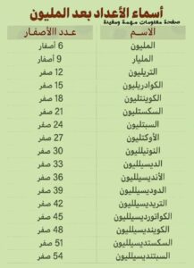 هل تساءلت يومًا عن الأرقام التي تأتي بعد المليون؟ عالم الأعداد لا يتوقف عند هذا الحد، فهناك أسماء للأعداد أكبر بكثير، تحمل كل منها قصة من الأصفار اللانهائية. في هذا المقال، سنأخذك في رحلة استكشافية لعالم الأرقام الفلكية، حيث ستتعرف على أسماء مثل التريليون، الكوادريليون، وصولًا إلى السبتنديليون، وما بعدها. استعد لتوسيع آفاقك وتعميق فهمك لعالم الرياضيات المدهش.