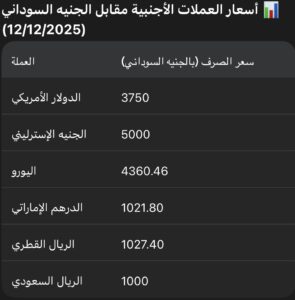 شهدت أسعار العملات الأجنبية، وعلى رأسها الدولار الأمريكي، ارتفاعات قياسية جديدة مقابل الجنيه السوداني، اليوم الجمعة الموافق 12 ديسمبر 2025، وذلك في كل من السوق الموازية والبنوك.