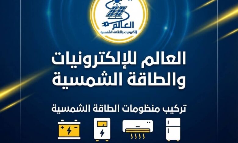 العالم للإلكترونيات والطاقة الشمسية: تجهيزات كاملة للكهرباء والمكيفات والثلاجات مع تركيب وخدمة موثوق